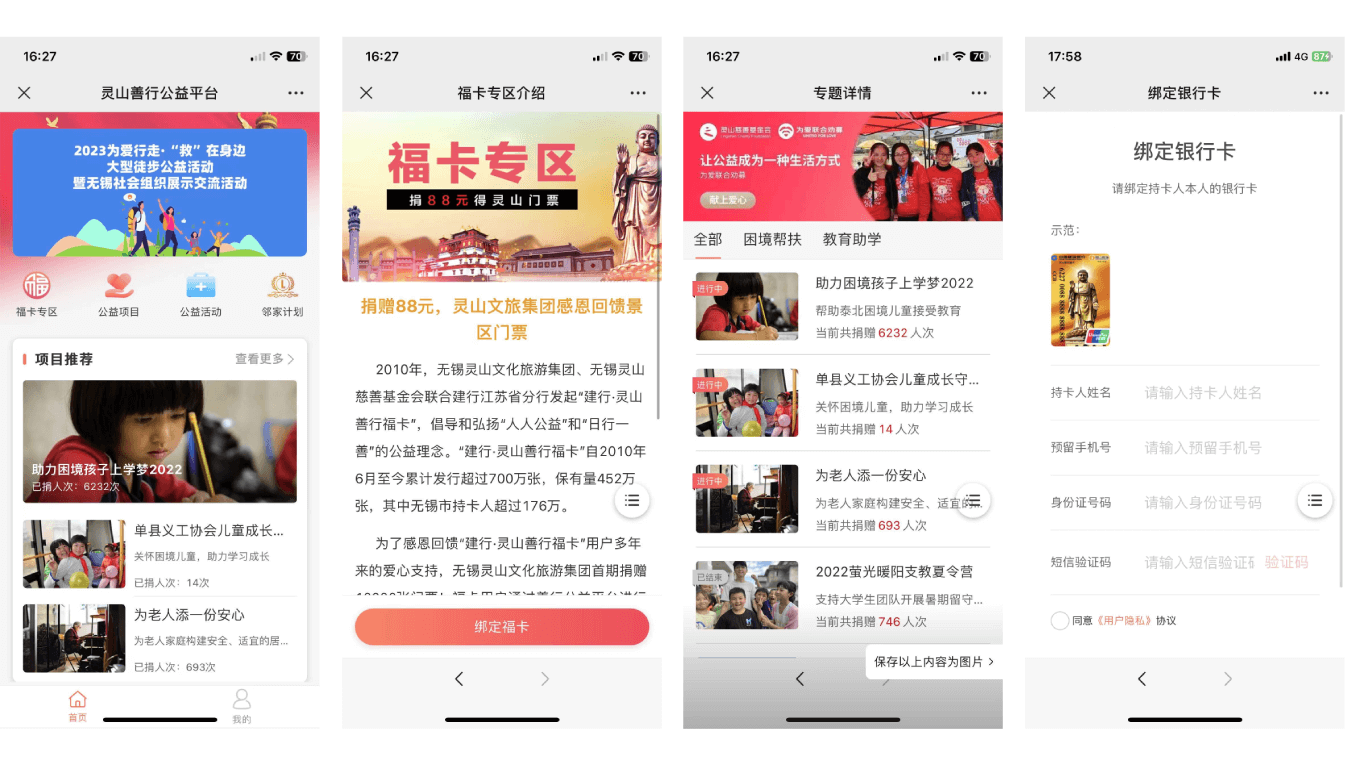 无锡慈善总会官网&灵山慈善基金会官网 两个项目均提供从零开始的全套解决方案,涵盖用户捐赠全流程,包括项目展示、捐赠记录、组队捐赠、信息披露,以及灵山生态内的在线捐赠方式(支持微信、支付宝、建行龙支付和工银e支付)
